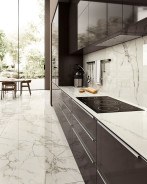 Atlas Plan's Calacatta Extra series offers a premium option for modern spaces, reflecting the elegant look of natural marble through porcelain stoneware slabs. The series enhances any environment with its variety of sizes and surface finishes. Key features of the Calacatta Extra series include: