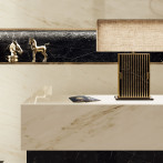 Cremo Delicato is an elegant large-format marble-look porcelain slab offered by Atlas Plan. Inspired by the impressive beauty of marble in art and architecture, this special material features a refined cream color intersected by golden veins, creating an aesthetic surface for traditional tastes. Available in a 160x320 cm size, with a 6 mm thickness, rectified edges, and a polished finish, Cremo Delicato is ideal for both residential and commercial projects, offering solutions that combine the classic spirit of traditional design with the originality of contemporary aesthetics.