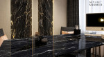 La Cuarcita Belvedere es una piedra natural de superficie negra intensa con audas vetas doradas y blancas. Su patrón dinámico y su resistencia la convierten en una opción ideal para proyectos arquitectónicos e interiores que buscan fuerza y atractivo visual.