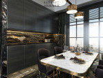 La Cuarcita Tropical Storm es una piedra natural impresionante con fondo negro profundo y vetas doradas, blancas y plateadas. Sus patrones dinámicos evocan la energía de una tormenta, perfecta para interiores modernos y de lujo.