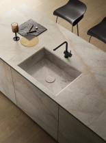 Appennino’nun gri zemin üzerindeki kırmızı ve altın damarlarla zenginleşen mermer efekti, mekânlara sıcak bir lüks dokunuş katar. Ahşap, metal ve doğal taş aksesuarlarla kombinlendiğinde hem kontrast hem denge sağlayarak şık ve sofistike alanlar yaratır.
