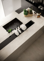 Atlas Plan's Boost White series features large-format porcelain stoneware slabs that combine the elegance of white with the textured effect of concrete. Ideal for both indoor and outdoor furniture applications, this material is suitable for kitchen countertops, backsplashes, and more. It is available in sizes of 162x324 cm (non-rectified) and 160x320 cm (rectified), with thickness options of 12 mm and 6 mm, and features a hammered surface finish. This series is perfect for those looking to add a modern touch to their spaces.