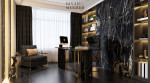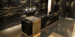 La Cuarcita Belvedere es una piedra natural de superficie negra intensa con audas vetas doradas y blancas. Su patrón dinámico y su resistencia la convierten en una opción ideal para proyectos arquitectónicos e interiores que buscan fuerza y atractivo visual.