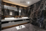 El Mármol Bruno Perla es una piedra natural refinada con un fondo que va del marrón oscuro al negro, realzado por elegantes vetas blancas y doradas. Sus patrones delicados pero audaces crean un efecto visual impresionante, convirtiéndolo en una opción muy apreciada para interiores sofisticados. Los tonos oscuros y las vetas contrastantes aportan profundidad y carácter a varios estilos de diseño.
