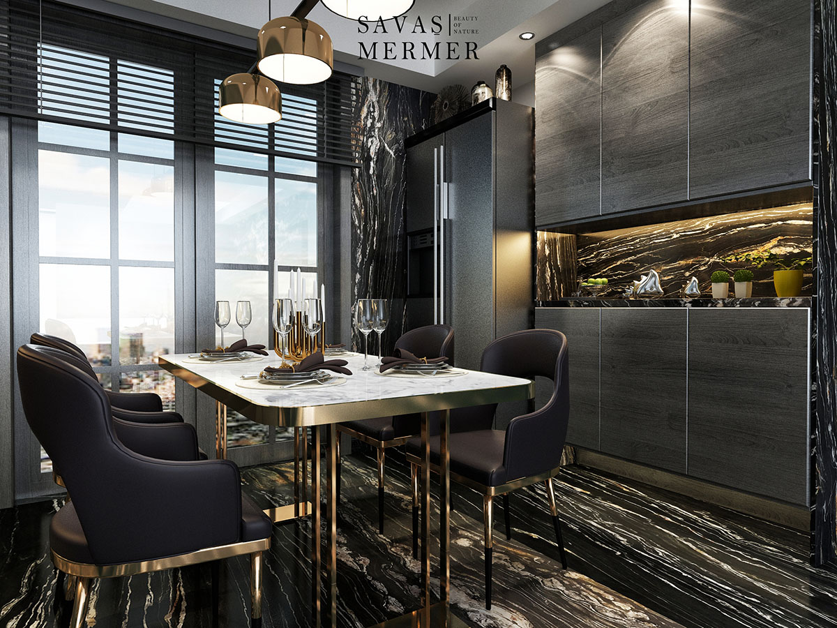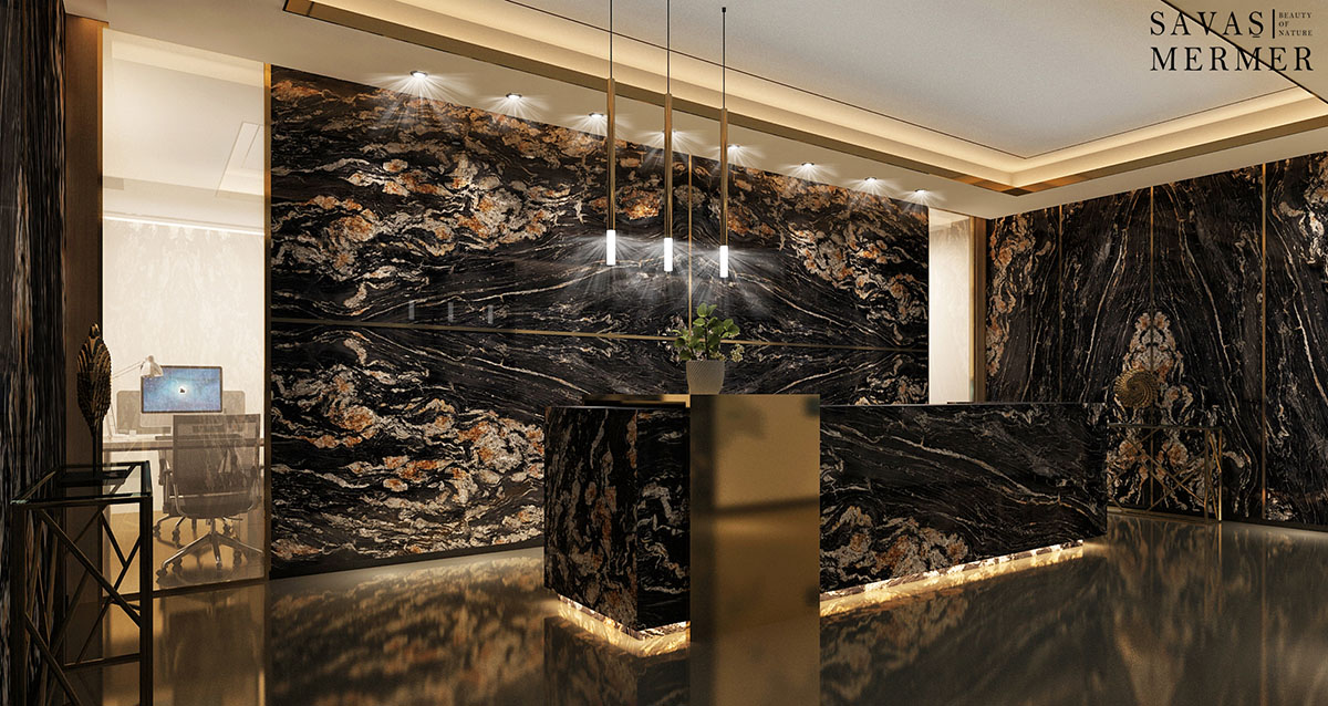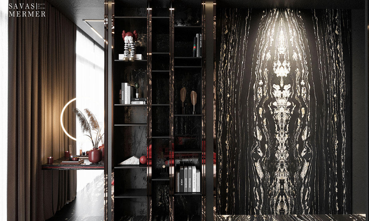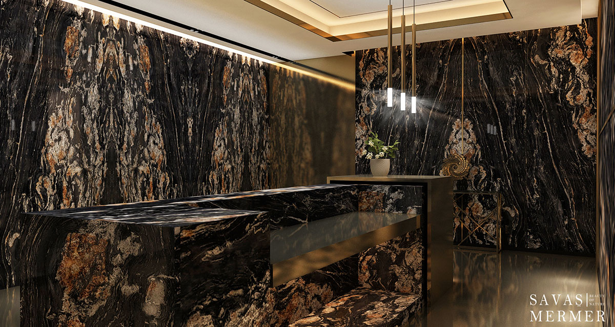 La Cuarcita Tropical Storm es una piedra natural impresionante con fondo negro profundo y vetas doradas, blancas y plateadas. Sus patrones dinámicos evocan la energía de una tormenta, perfecta para interiores modernos y de lujo.