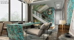 La Quarzite Amazonite (Turchese) si distingue per le sue vivaci tonalità turchesi e blu, arricchite da venature beige, grigie e marroni. Questa quarzite unica dona carattere a qualsiasi ambiente, ideale per applicazioni interne e architettoniche. I contrasti audaci e la bellezza naturale creano profondità e raffinatezza sia in design moderni che classici.