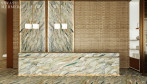 Quartzite Fusion è una pietra naturale sorprendente che unisce tonalità terrose, verdi profondi, marroni caldi e accenni di blu e oro. I suoi motivi dinamici creano un senso di movimento, rendendola una scelta affascinante per applicazioni d’interni e architettoniche. La resistenza del quarzite, unita alla sua estetica vivace, fa del Quartzite Fusion un’opzione privilegiata per design di alta gamma.